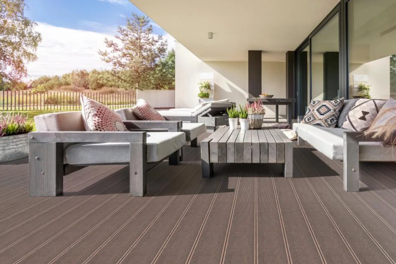 Podobnie jak deski naturalne także deski kompozytowe na taras dostępne są w wielu różnych odcieniach. Tym materiałem zaaranżujesz więc zarówno nowoczesny taras w stylu industrialnym, jak i przytulną przestrzeń inspirowaną stylem klasycznym lub rustykalnym.